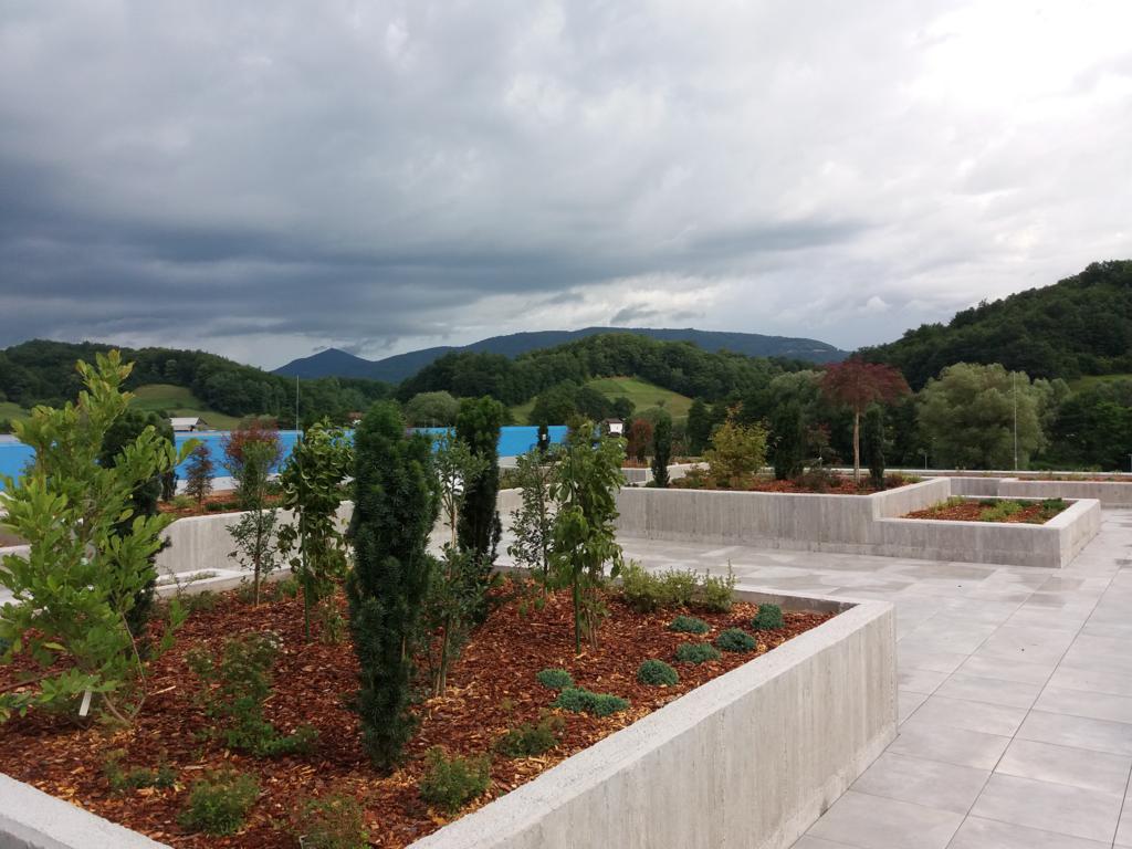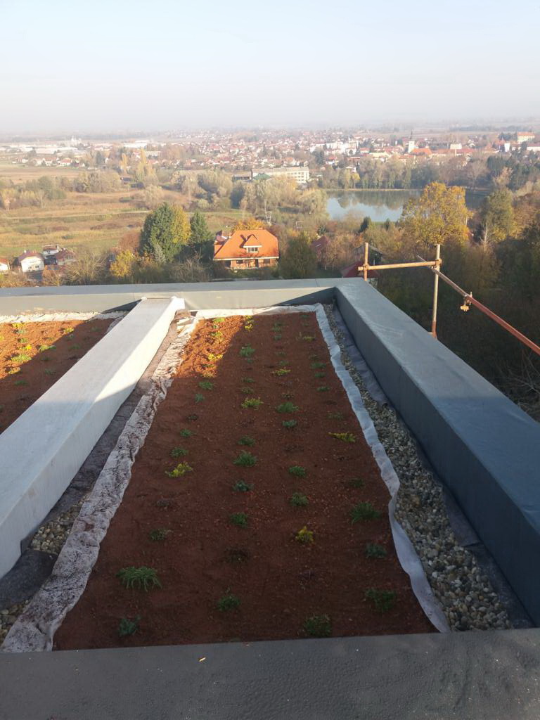 Uređenje zelenog vrta na ravnom krovu upravne zgrade - Hum na Sutli.