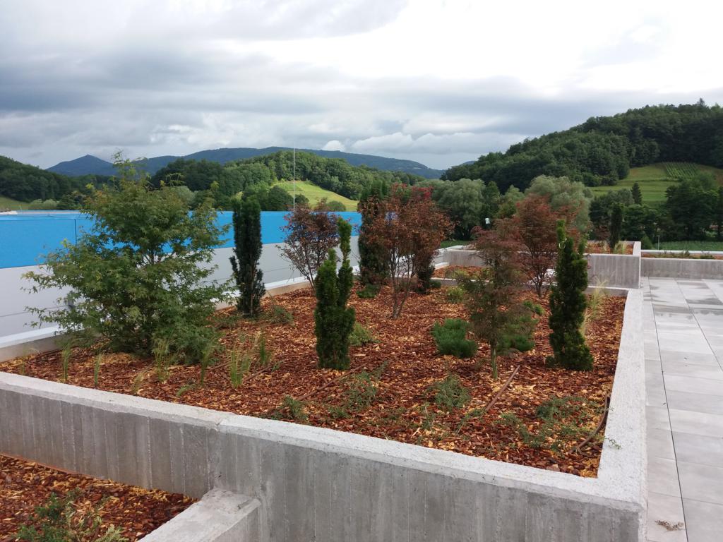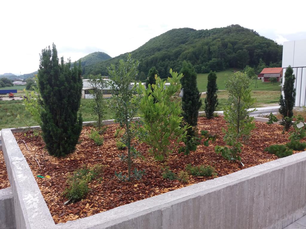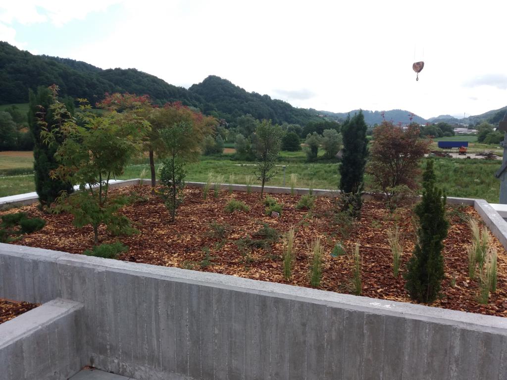Uređenje zelenog vrta na ravnom krovu poslovne zgrade - Hum na Sutli.
