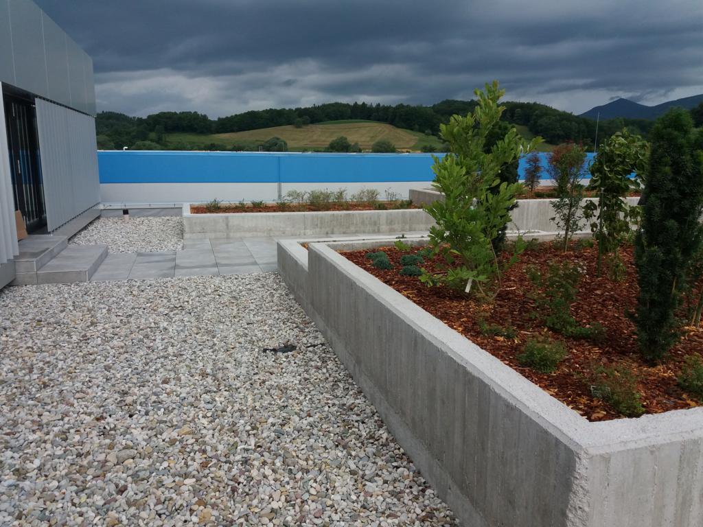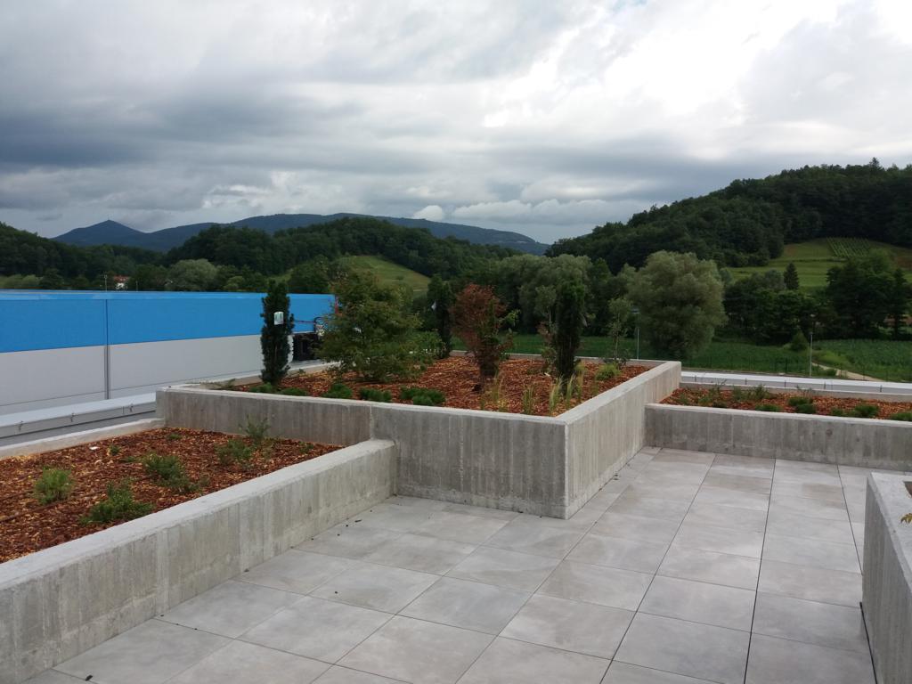 Uređenje zelenog vrta na ravnom krovu poslovne zgrade - Hum na Sutli.